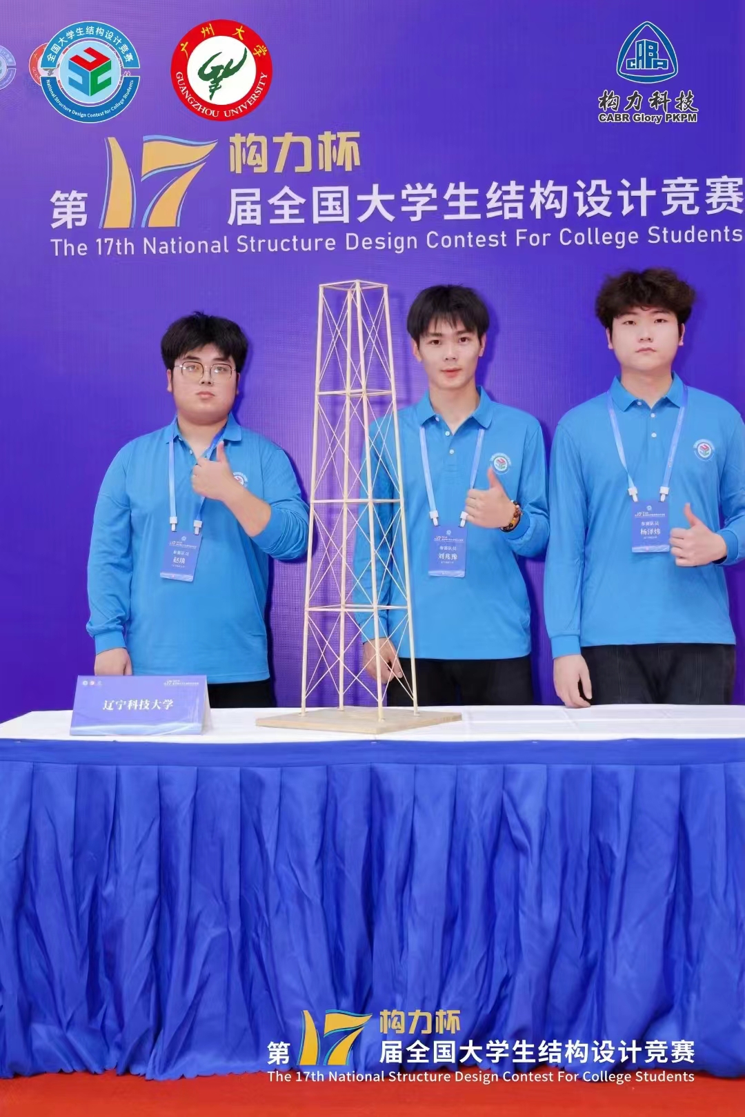 11月7日-10日,由全國大學生結構設計競賽委員會主辦,廣州大學承辦的2024年全國大學生結構設計競賽總決賽成功舉辦。本屆總決賽在全國31個省(自治區、直轄市)組織分區賽的595所高校、1863支參賽隊伍中擇優選拔產生119所高校120支隊伍參賽。我校土木工程學院指導教師李吉人,帶領劉兆豫、楊澤煒和趙瑱3名同學代表學校參賽,他們不畏強手、奮勇拼搏,經過16小時現場模型制作、陳述答辯、模型加載等環節激烈比拼,奪得總決賽二等獎,實現了我校在該項賽事的歷史性突破。
