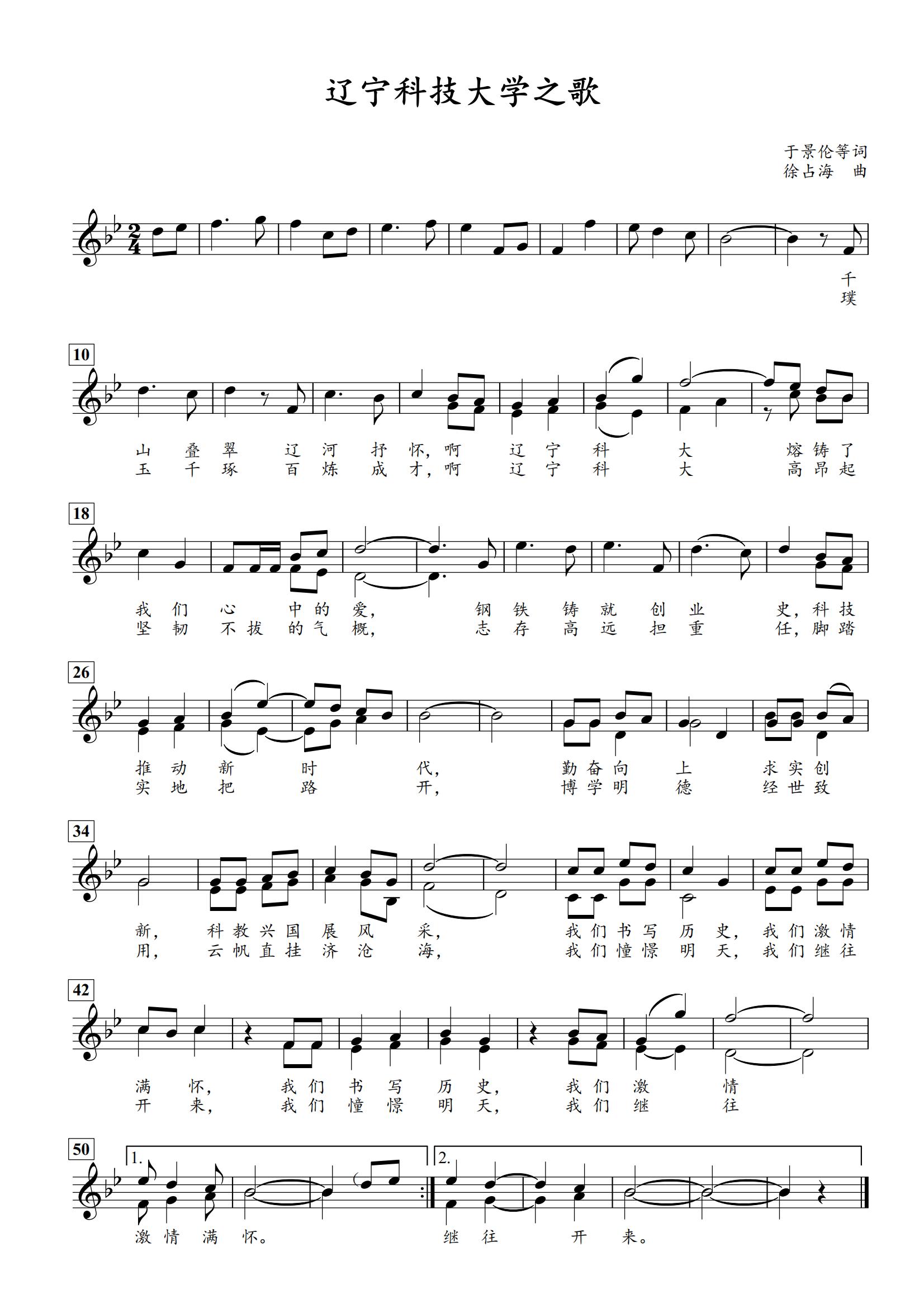 校歌:《遼寧科技大學校歌》 校歌簡譜