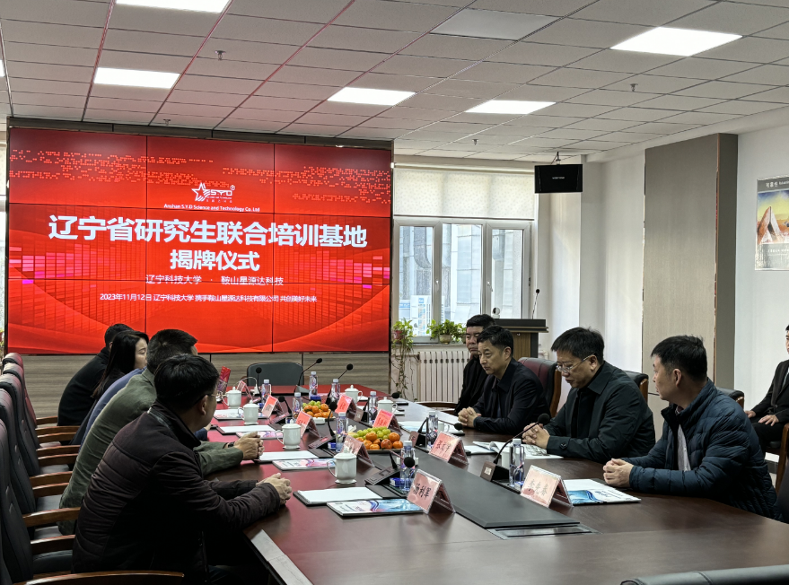 2023年11月12日上午,遼寧科技大學與鞍山星源達科技有限公司舉行研究生聯合培養基地揭牌儀式。遼寧科技大學黨委常委、副校長李勝利出席會議,研究生院、化學工程學院、星源達科技有限公司相關人員及學生代表參加會議。