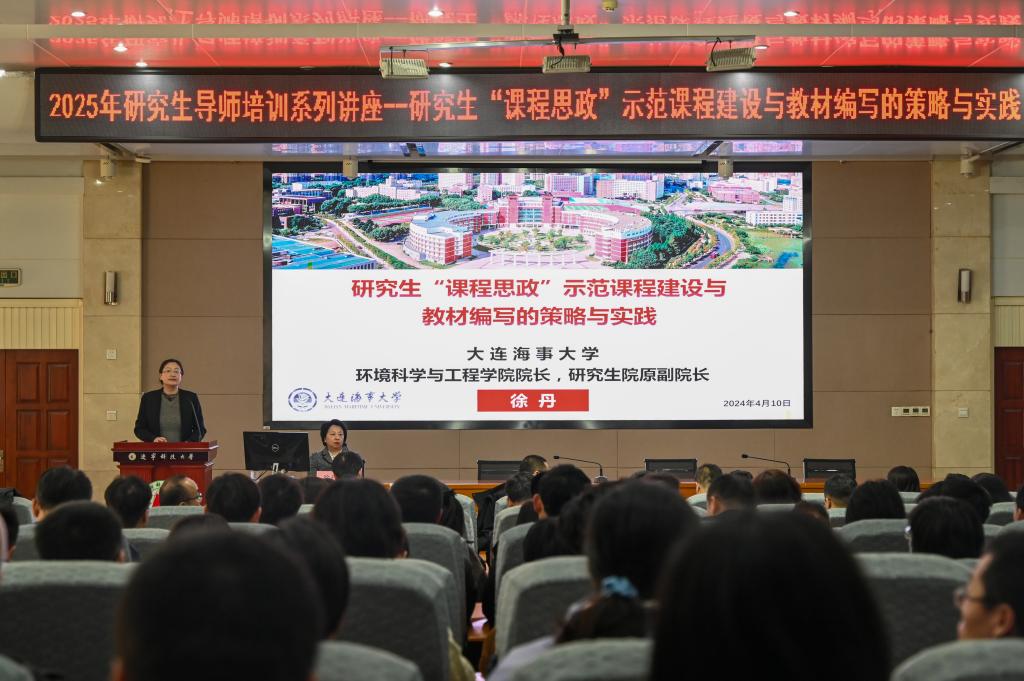 為深入貫徹立德樹人根本任務(wù),以"導(dǎo)師能力提升"與"課程思政創(chuàng)新"為雙輪驅(qū)動,4月10日下午,研究生院在圖書館報告廳啟動2025年研究生導(dǎo)師系列培訓(xùn)活動。首次培訓(xùn)特邀大連海事大學(xué)環(huán)境科學(xué)與工程學(xué)院院長徐丹教授作了題為“研究生‘課程思政’示范課程建設(shè)與教材編寫的策略與實踐”專題報告。各培養(yǎng)學(xué)院研究生教學(xué)院長、導(dǎo)師代表、研究生授課教師等人員聆聽講座,研究生院相關(guān)同志參會。