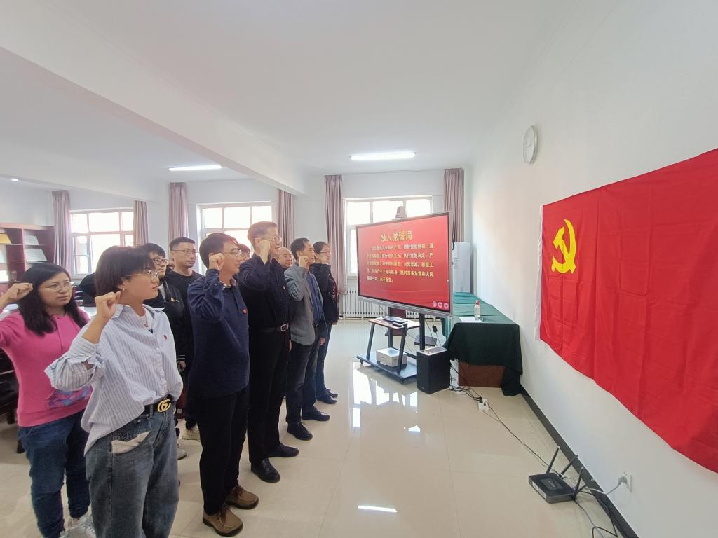 首先,全體黨員觀看了中央紀(jì)委國家監(jiān)委制作的電視專題片《永遠(yuǎn)吹沖鋒號(hào)》,通過觀看典型案例,為全體黨員敲響了防腐警鐘,拉響了倡廉警報(bào),增強(qiáng)了黨員的宗旨觀念和廉潔自律意識(shí)。隨后,李路云、呂玲同志作為黨員代表逐一朗讀入黨志愿書、入團(tuán)志愿書,回憶入黨初心,查擺自身差距,就發(fā)揮先鋒模范作用進(jìn)行表態(tài)。最后,全體黨員面對(duì)鮮艷的黨旗舉起右拳,莊嚴(yán)宣誓重溫入黨誓詞,回顧入黨情景。