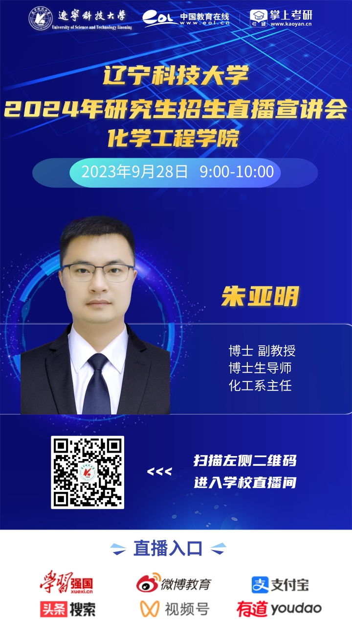 為能使廣大考生充分了解學(xué)校研究生相關(guān)學(xué)科專(zhuān)業(yè)招生政策及基本情況,遼寧科技大學(xué)化工學(xué)院針對(duì)本學(xué)院相關(guān)學(xué)科做2024年碩士研究生招生宣講,歡迎廣大考生積極參加,宣講會(huì)采取線上直播方式進(jìn)行,相關(guān)信息如下: